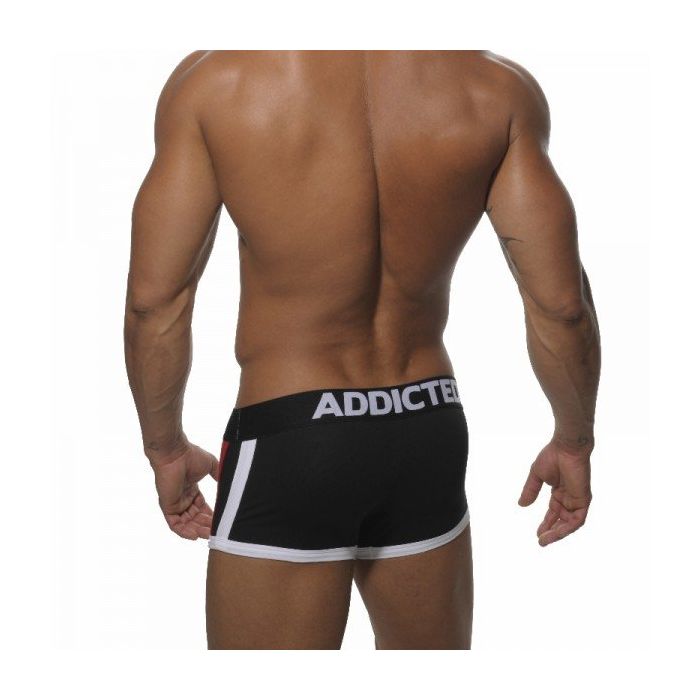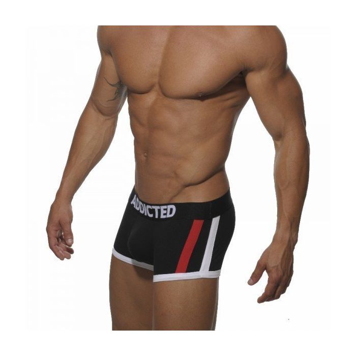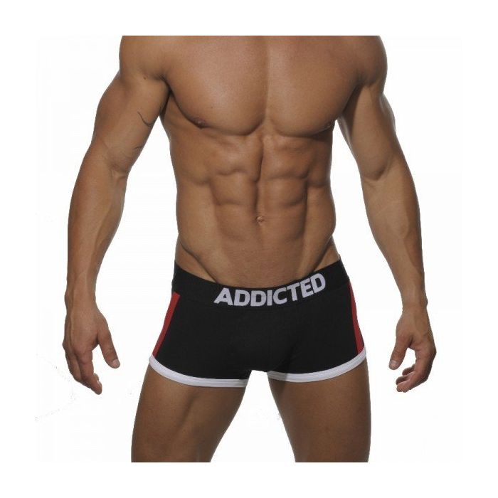 Voel je super sexy met het dragen van de AD158 Pack Up Boxer van Addicted. Daarnaast bevat deze boxershort ook een handig 'pack-up' systeem. Het pack-up systeem is een uitneembare foam cup die je aan de voorkant in een pouch kunt doen. Hierdoor zit het niet alleen voller uit, maar ook symmetrischer. Verder is de AD158 Pack Up boxershort een low-cut basic square model die zeer populair is. Door het gebruikte materiaal is hij zeer comfortabel om te dragen. Deze AD158 Pack Up Boxer van Addicted heeft als hoofdkleur Zwart met witte zomen rondom de benen die aan de zijkanten doorlopen tot aan de tailleband. Tevens zijn er nog extra strepen aan de zijkanten aangebracht in rood. Het Addicted logo vind je zowel aan de voorkant als aan de achterkant op de tailleband. Verdere verkrijgbare kleuren zijn Navy Blauw, Rood en Wit.