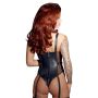 Jij bent heel wat van plan wanneer jij deze leren body uit de kast trekt. Met deze body aan zal jij je dan ook op en top sexy, vrouwelijk, stoer, en dominant voelen. Jij kan heel de wereld aan wanneer jij je lichaam in deze sexy body zal hullen. De body heeft transparante stukken aan de zijkanten die licht doorschijnend zijn voor een spannend effect. De body is aan de achterkant te sluiten en aan de voorkant en in het midden te verstellen, zodat jij altijd de perfecte pasvorm zal ervaren. Tevens zitten aan de body verwijderbare, verstelbare jarretels die optioneel zijn. Het halssieraad geeft het model een bdsm uiterlijk waardoor deze body ook zeer geschikt is voor meesteressen. Draag er je mooiste en hoogste pumps bij, maak je zwaar op en laat zien wat jij in huis hebt.