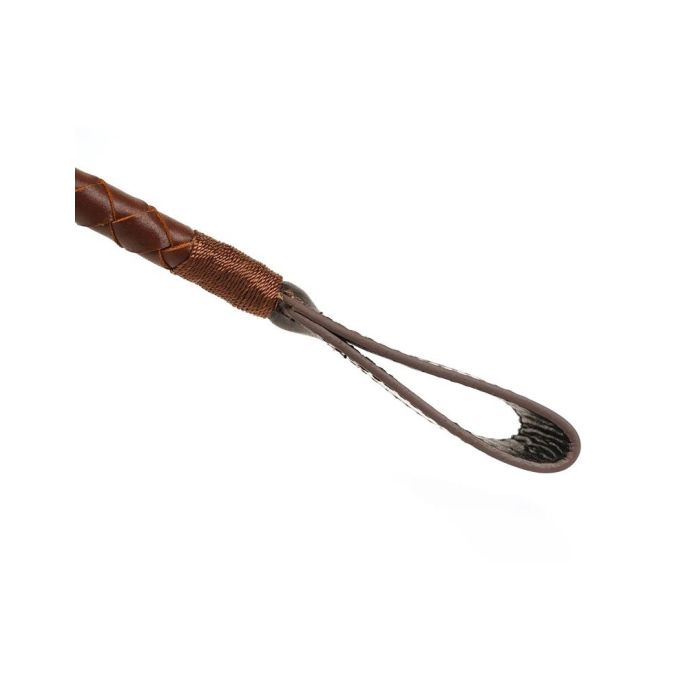 Deze crop zweep van Liebe Seele is gemaakt van een houten lichaam omwikkeld met handgevlochten echt rundleer en heeft een dubbel gelaagd hoofd. Met een totale lengte van 62 cm, een schachtlengte van 40 cm en een polsbanddiameter van 13 cm, is deze crop van hoge kwaliteit en perfect voor gebruik in verschillende situaties.