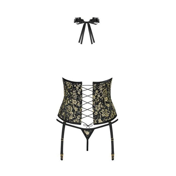 Obsessive Shelle Korset Set - Zwart / Goud