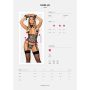 De kanten halsband is afgewerkt met een satijnen strik aan de voorkant en een strik sluiting aan de achterkant. Het taille korset heeft een haaksluiting aan de voorkant en een rijgveter in het rugpand. Onderaan het korset bevinden zich 2 afneembare jarretelbandjes.