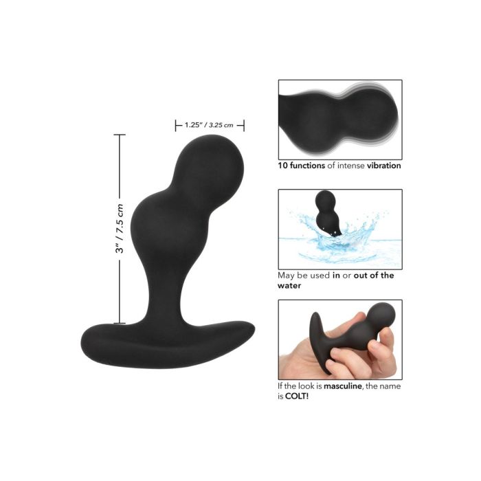 De Vibrerende Buttplug Dual Power van het merk Colt is een dubbele bolvormige ontwerp en heeft krachtige trillingen in de schacht. Bedien de 10 vibratiestanden eenvoudig op het speeltje zelf. Laad de buttplug in 1 uur op met de meegeleverde USB-oplaadkabel om te genieten van 70 minuten snelle stimulatie of 90 minuten langzame vibraties. Terwijl de gemakkelijke knop de intensiteit regelt en de dikke plug je de stimulatie geeft die je wilt, onthoudt de geïntegreerde ultramoderne geheugenchip precies hoe je het leuk vindt door te beginnen met de laatst gebruikte functie. Dual Power is gemaakt van siliconen en is waterdicht.