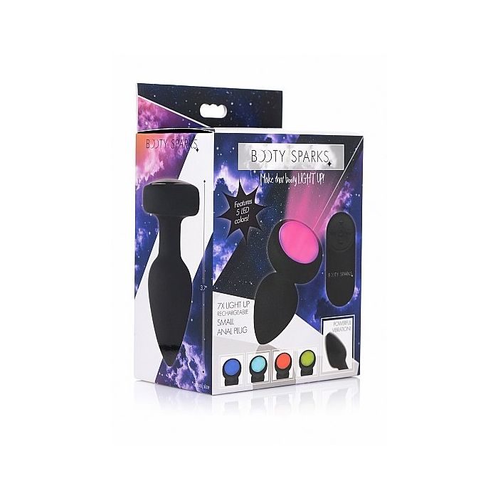 Geniet van ondeugende spelletjes in het donker met de vibrerende buttplug met led verlichting van het merk XR Brands. Deze siliconen buttplug zorgt door middel van vibraties voor heerlijke anale stimulatie en creëert tegelijkertijd een vrolijk gekleurd achterwerk. De plug heeft een lengte van 9 cm (7 cm inbrengbaar), diameter van 3,4 cm en een taps toelopende vorm. Dankzij deze vorm is het inbrengen gemakkelijk. Gebruik hierbij glijmiddel op waterbasis voor een extra soepel verloop. De vibraties en 5 verschillende kleuren zijn eenvoudig te bedienen met bijgeleverde draadloze afstandsbediening. Doe dit zelf of geef hem aan je partner voor een spannend samenspel. Laad hem na gebruik weer op met de bijgevoegde USB kabel.
