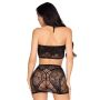De bijpassende minirok maakt de set compleet met zijn flirterige uitstraling en doorzichtige design. Het visnetkant laat een vleugje huid zien, waardoor je een mysterieuze en verleidelijke uitstraling krijgt. Of je nu een romantische avond plant of gewoon jezelf wilt verwennen, deze set is de perfecte keuze.