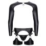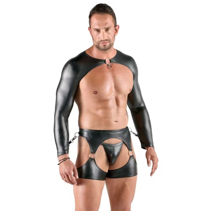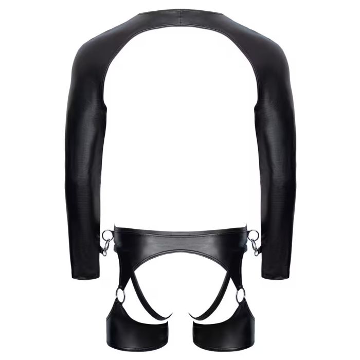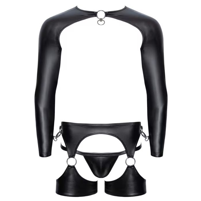Deze set bestaat uit een stijlvolle bolero, een heupgordel en een jock, allemaal uitgevoerd in een trendy zwarte matte look. Het zachte en elastische materiaal zorgt ervoor dat je je vrij kunt bewegen, terwijl je tegelijkertijd de sensatie van bondage ervaart.