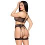 3-Piece BH en Harnas Set met Hartdesign - Zwart