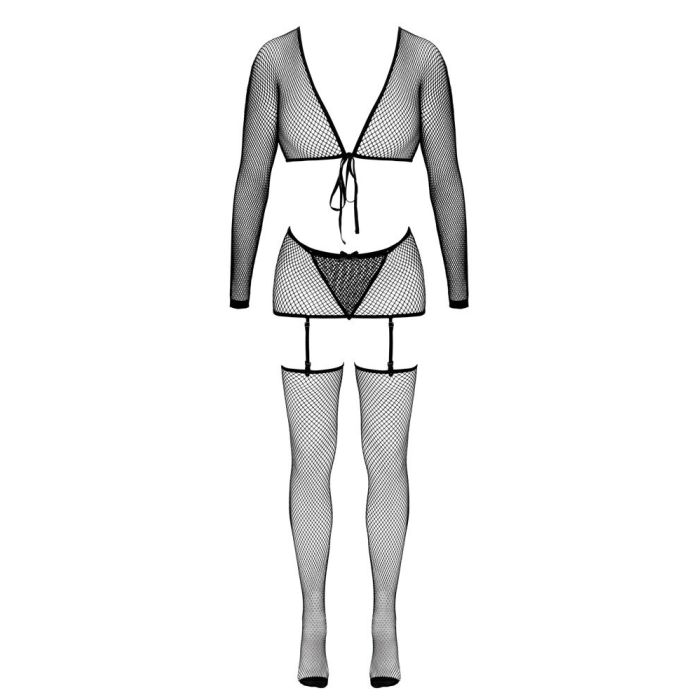 Prachtige 4-Delige Jarretelset Fantasy by Cottelli is een onweerstaanbare set die al je fantasieën tot leven brengt! Deze set bestaat uit een elegante bolero, een sexy string, een jarretelgordel en een paar verleidelijke kousen, allemaal vervaardigd uit fijn, elastisch visnet dat zacht aanvoelt op de huid. De mesh bolero met lange mouwen biedt niet alleen een speelse uitstraling, maar kan ook op verschillende manieren worden geknoopt, zodat je altijd de perfecte look kunt creëren. De jarretelgordel is voorzien van verstelbare jarretelbandjes, waardoor je de pasvorm kunt aanpassen voor optimaal comfort en ondersteuning. De jarretelkousen zijn uitgerust met een versterkt teengedeelte, wat zorgt voor extra duurzaamheid en een verfijnde afwerking. Deze set is perfect voor een speciale gelegenheid of om jezelf gewoon eens te verwennen. Voeg een vleugje fantasie toe aan je lingeriecollectie en laat je zelfvertrouwen stralen!