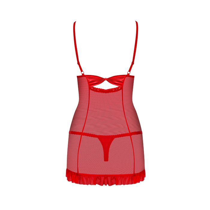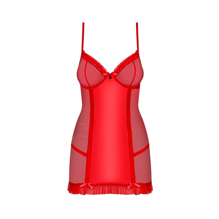 De 827 Chemise en String van Obsessive is een onweerstaanbare lingerie set die perfect is voor romantische avonden. Deze set bestaat uit een elegante chemise en een bijpassende string, vervaardigd uit hoogwaardige materialen die zorgen voor een luxe gevoel en een perfecte pasvorm. De cups van de chemise zijn niet gevoerd, maar zijn uitgerust met beugels die je decolleté prachtig accentueren en de juiste ondersteuning bieden. De sensuele afwerking met rushes aan de onderkant en de luxe details maken deze chemise tot een must-have in je lingeriecollectie. Voel je zelfverzekerd en verleidelijk met deze prachtige set die je vrouwelijke vormen op een betoverende manier benadrukt.