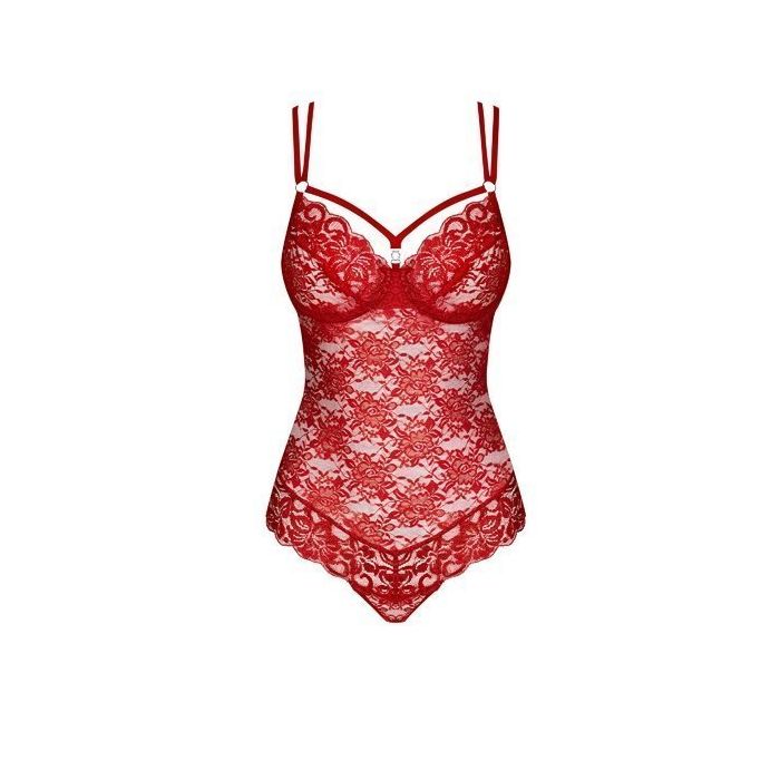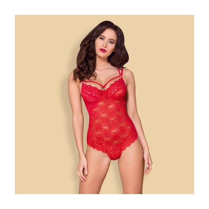 In de 860 Romantisch Body - Rood van Obsessive zal jouw prachtige lichaam zeker extra stralen. De body heeft een sexy string model, ondersteunende beugel cups en dubbele gekruiste bandjes op de rug. Hul jezelf in de zachte multistretch stof met romantisch rozen patroon en glinsterende details en laat de temperaturen door het dak gaan!