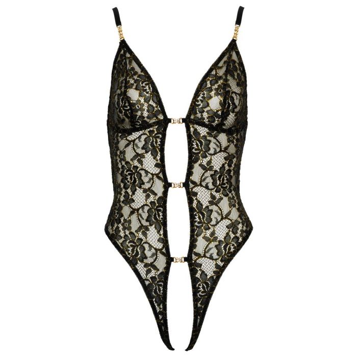 Abierta Fina Kanten Body Gouden Details - Zwart