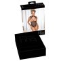 De stimulerende ketting in het open kruis is een ander uniek aspect van deze body, dat eveneens afneembaar is, waardoor de veelzijdigheid van het kledingstuk wordt vergroot. De verstelbare bandjes en de drie fluwelen stretchbandjes in de vrije rug bieden de mogelijkheid om de pasvorm aan te passen aan de individuele voorkeuren, wat zorgt voor optimaal comfort en ondersteuning. Met een samenstelling van 90% polyamide en 10% elastaan, biedt deze body niet alleen een luxe uitstraling, maar ook duurzaamheid en een perfecte pasvorm die de hele avond meegaat. Dit is een must-have voor elke modebewuste vrouw die haar sensuele kant wil omarmen.