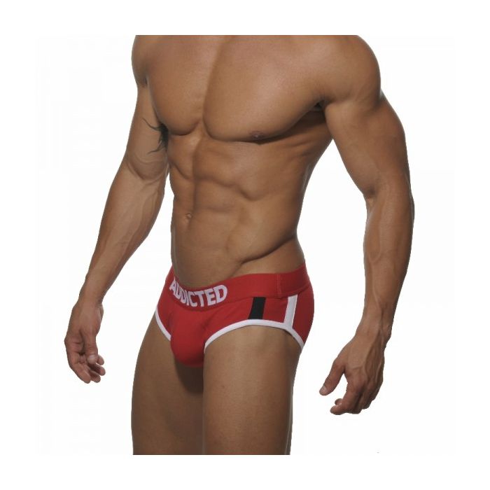 De AD157 Pack Up Brief van Addicted zorgt ervoor dat jij een zichtbaar welgevormde voorkant zult krijgen. Dat komt doordat Addicted daar hun bekende 'pack-up' systeem in heeft aangebracht. Het pack-up systeem is een uitneembare foam cup die je aan de voorkant in een pouch kunt doen. Hierdoor zit het niet alleen voller uit, maar ook symmetrischer. Verder is de AD157 Pack Up Brief een low-cut basic square model die zeer populair is. Door het gebruikte materiaal is hij zeer comfortabel om te dragen. Deze AD157 Pack Up Brief van Addicted heeft als hoofdkleur Rood met witte zomen rondom de benen die aan de zijkanten doorlopen tot aan de tailleband. Tevens zijn er nog extra strepen aan de zijkanten aangebracht in zwart. Het Addicted logo vind je zowel aan de voorkant als aan de achterkant op de tailleband. Verdere verkrijgbare kleuren zijn Navy Blauw, Zwart en Wit.