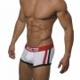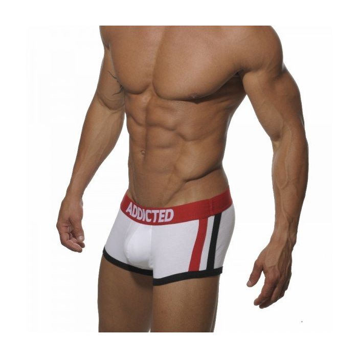 De AD158 Pack Up Boxer van Addicted zorgt ervoor dat jij een zichtbaar welgevormde voorkant zult krijgen. Dat komt doordat Addicted daar hun bekende 'pack-up' systeem in heeft aangebracht. Het pack-up systeem is een uitneembare foam cup die je aan de voorkant in een pouch kunt doen. Hierdoor zit het niet alleen voller uit, maar ook symmetrischer. Verder is de AD158 Pack Up boxershort een low-cut basic square model die zeer populair is. Door het gebruikte materiaal is hij zeer comfortabel om te dragen. Deze AD158 Pack Up Boxer van Addicted heeft als hoofdkleur Wit met zwarte zomen rondom de benen die aan de zijkanten doorlopen tot aan de tailleband. Tevens zijn er nog extra strepen aan de zijkanten aangebracht in rood, evenals de tailleband. Het Addicted logo vind je zowel aan de voorkant als aan de achterkant op de tailleband. Verdere verkrijgbare kleuren zijn Navy Blauw, Rood en Zwart.