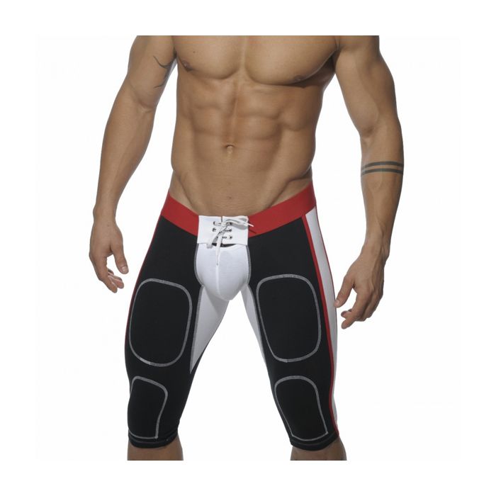 Voor wie zelf of diens partner helemaal heet wordt van stoere American Football spelers is de Fetish Knee Pant van Addicted zeker geschikt. Deze broek komt tot net over de knie en heeft een sportieve look, een lage taille en een strakke pasvorm, zodat al je mannelijke vormen goed te zien zijn. Aan de voorkant van de broek zijn voeringen genaaid voor een authentieke look. De pouch is voorzien van een push-up systeem met daarboven een rijgveter.