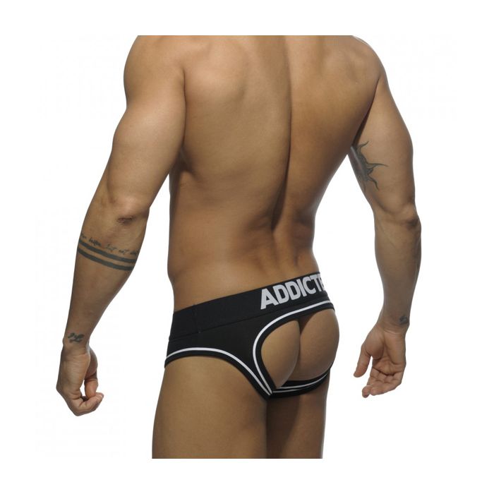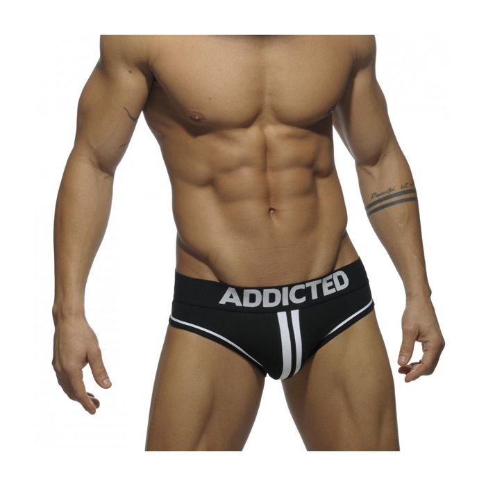 Deze klassieke jock slip is ontworpen met een lage en brede tailleband van zacht elastiek, waardoor hij niet alleen goed zit, maar ook een luxe gevoel geeft. De tailleband is subtiel voorzien van het iconische Addicted logo, wat een extra touch van flair toevoegt. De randen zijn afgewerkt met een chique zwarte en witte zoom, die niet alleen visueel aantrekkelijk is, maar ook zorgt voor een perfecte pasvorm.