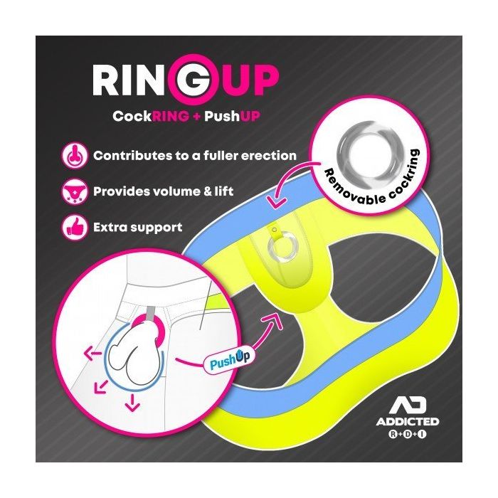 Het is tijd om je nachten nu nóg spannender te maken met het dragen van de Addicted Cockring Jock met Rits - Zwart. Deze spannende jock van het merk Addicted zal jou het zelfvertrouwen geven om toe te geven aan je diepste verlangens. De jock is gemaakt van een rubberen lookalike stof waardoor je een pikante uitstraling krijgt. Daarnaast beschikt deze jock over een ingebouwde RING-UP technologie en heeft de jock een rits aan de voorzijde waardoor je altijd klaar bent voor intieme spontaniteit.
