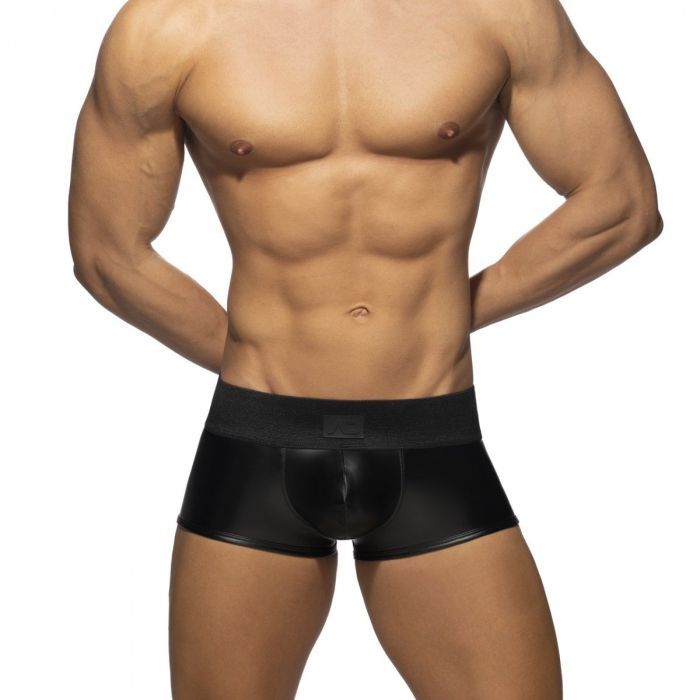 Maak je avonden spannender met het dragen van de Addicted Cockring Trunk met Rits - Zwart. Deze trunk is gemaakt van een gelamineerde stof die een rubberen stof imiteert waardoor je je super sexy zult voelen. Daarnaast beschikt deze trunk over een rits aan de achterkant en een ingebouwde RING-UP technologie waardoor je door altijd klaar bent voor intieme spontaniteit.