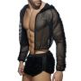 Put your hand up! Get on the floor! In de Crop Jacket - Zwart van Addicted ga jij in stijl de dansvloer op. Dit korte jack met capuchon is gemaakt van semi-transparant mesh. Het mesh geeft een sportieve look en is lekker luchtig. Bovendien kun jij jouw gespierde body showen in dit jack. De Crop Jacket heeft een kort model, lange mouwen, een rits in de voorkant en een capuchon. Op de mousen en op de capuchon zijn synthetische veren aangebracht voor een feestelijk effect. Draag de Crop Jacket - Zwart met een bijpassende short of slip voor een super sexy party look!