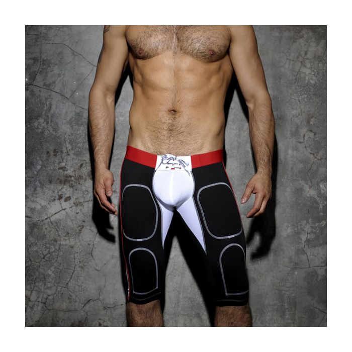 Deze unieke kniebroek transformeert je in een sexy sportman, perfect voor zowel de gym als een spannende avond uit. De met foam gevoerde delen op de bovenbenen en knieën bieden niet alleen extra comfort, maar zorgen er ook voor dat je klaar bent voor een stootje. De elastische tailleband zit laag op de heupen en het opvallende rijgdetail met witte veter, voorzien van het iconische Addicted logo, voegt een speelse touch toe aan je look.
