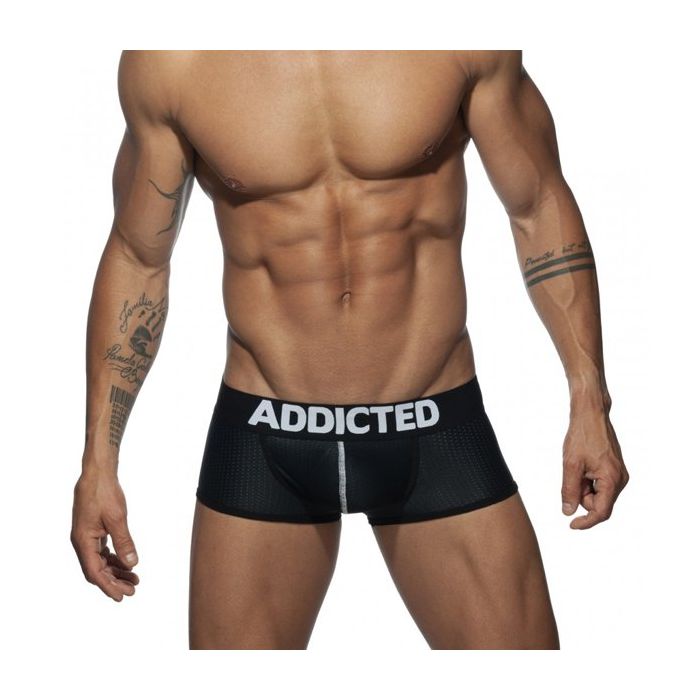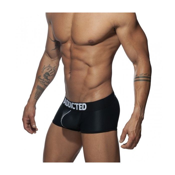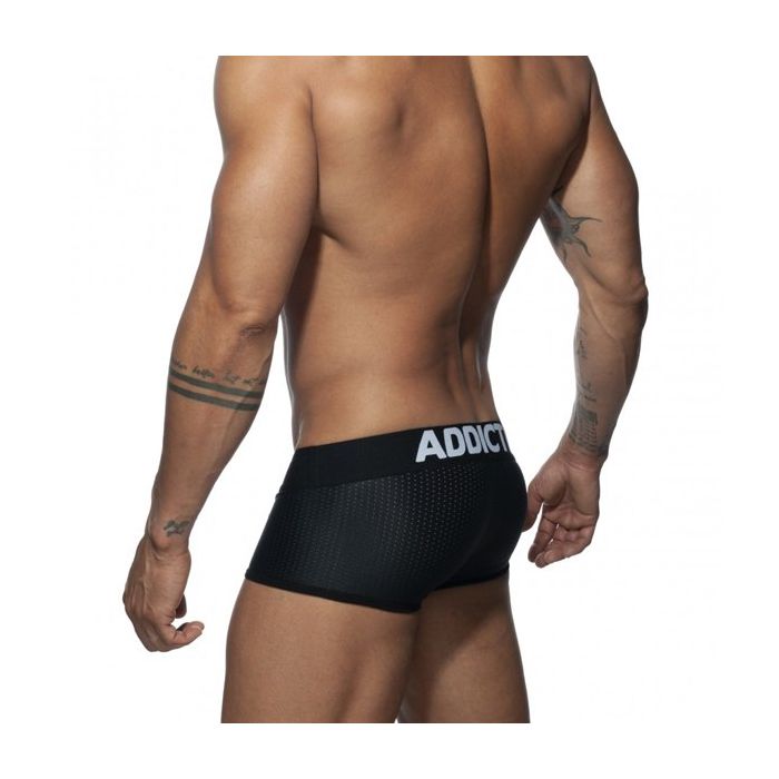 De Addicted Push Up Mesh Trunk - Zwart heeft een perfect aansluitende pasvorm en een hoog draagcomfort. En met de boxershort heb jij opvallend meer in huis! Het kruis van de boxer is namelijk uitgerust met een push up buidel voor extra volume.