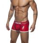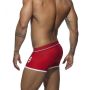 De rode Sport 09 Boxer van het merk Addicted heeft een sportieve look. De boxershort heeft een lage, elastische tailleband waar het Addicted logo aan de voorkant op staat afgebeeld en de tailleband is afgewerkt met sportieve strepen in het wit en donkerblauw. Het luchtige en elastische materiaal zorgt voor een hoog draagcomfort en een strakke pasvorm. De comfortabele pouch is afgewerkt met donkerblauwe zomen en onderaan de pijpen is de boxer afgewerkt met witte zomen. Op de linker heup staat in het donkerblauw en wit 09 afgebeeld in een sportief design.