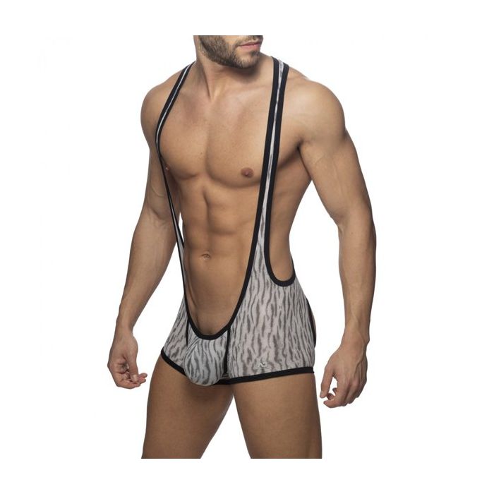 Addicted Tiger Print Bottomless Singlet - Grijs