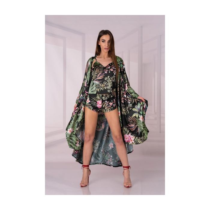 De Alexandrine Top en Short uit de Aquareel Collection van Livco Corsetti zijn een zomers genot om te aanschouwen. Deze tweedelige set is gemaakt van satijn geweven stof met een kleurrijke en tropische print. De lichte en luchtige stof maakt deze set ideaal om in te loungen of om in te slapen.