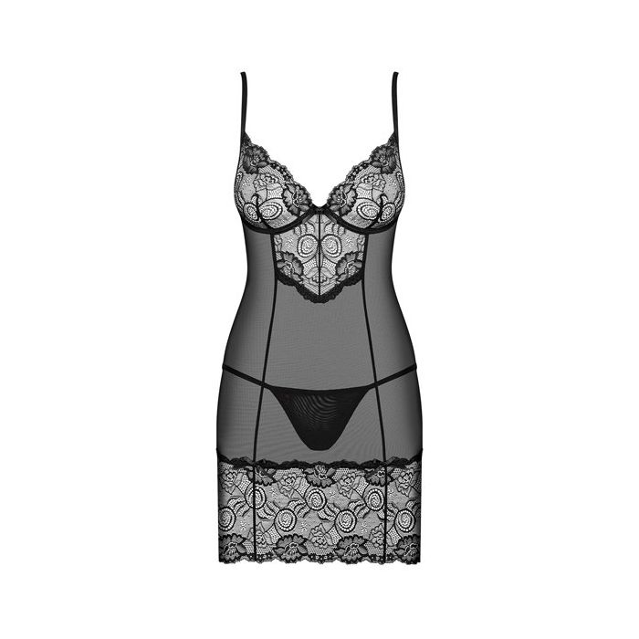 De Alluria Chemise van Obsessive is een klassiek en tegelijk erg sexy nachtjurkje gemaakt van doorschijnend tule en sierlijk bloemen kant. Het tule en kant voelen heerlijk zacht aan en hebben multistretch kwaliteit voor de perfecte pasvorm. Het korte jurkje heeft een royaal afgewerkt decolleté met zachte beugel cups gemaakt van sierlijk bloemen kant. Met de verstelbare schouderbandjes maakt je de chemise perfect passend.