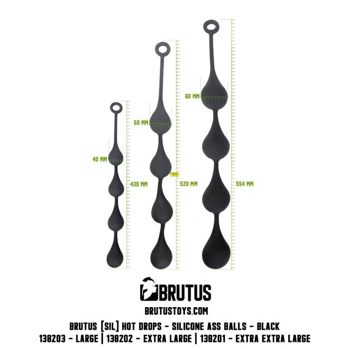 Voor de echte anaalliefhebbers die op zoek zijn naar nieuwe ervaringen in de wereld van anaal spelen, is er nu Brutus de Hot Drops. Dit speeltje bestaat uit vier grote ballen die met elkaar verbonden zijn en vereist serieuze toewijding om ze allemaal te gebruiken. Met de Hot Drops krijg je vier keer zoveel plezier in één speeltje!