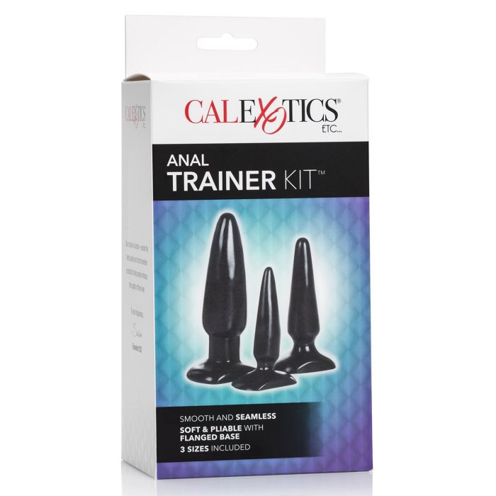 Deze geweldige anal trainer kit van calexotics helpt jou om het trainen van je anus makkelijker te maken. De 3 anaal pluggen zijn klein middel en groot en zullen alle drie een vlakke basis hebben voor veilig gebruik en zodat jij ze langere tijd kan inhouden. Ze hebben een taptoe lopende punt zodat hij makkelijk naar binnen zal glijden. Breng wat glijmiddel aan op de plug en hij zal nog lekkerder glijden. Maak voor en na elk gebruik goed schoon onder de kraan met een milde zeep en een toycleaner.