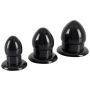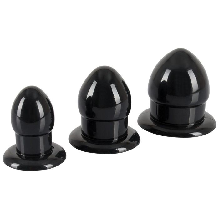 De set bestaat uit 3 glanzend zwarte analplugs met een veilige stopper aan de onderkant. De afmetingen van de plugs zijn als volgt (van klein naar groot):