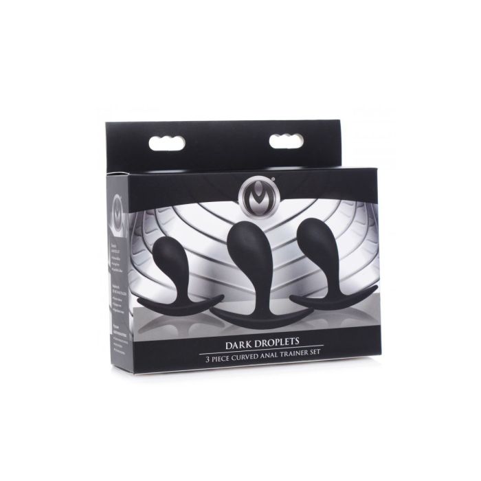 De Anal Trainer Set Dark Droplets van Master Series zijn 3 fluweelzachte druppelvormige buttplugs. De plugs zijn zo ontworpen voor gemakkelijk anaal genot. Begin met de kleinste en ga steeds iets groter. Het siliconen materiaal voelt heerlijk zacht en comfortabel aan. Wij adviseren glijmiddelen te gebruiken op waterbasis.