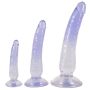 De Anal Training Set van het merk Crystal Clear bestaat uit 3 verschillende maten dildo's. Elke dildo heeft een kenmerkend penisuiterlijk met een gevoelige eikel. De dildo's zijn gemaakt van hoogwaardig PVC materiaal. Door de zuignap vast te maken op een gladde ondergrond kun jij handsfree genieten. Daarnaast zorgt de brede zuignap dat de dildo niet naar binnen schiet. Maak de dildo's na gebruik goed schoon met een toycleaner.
