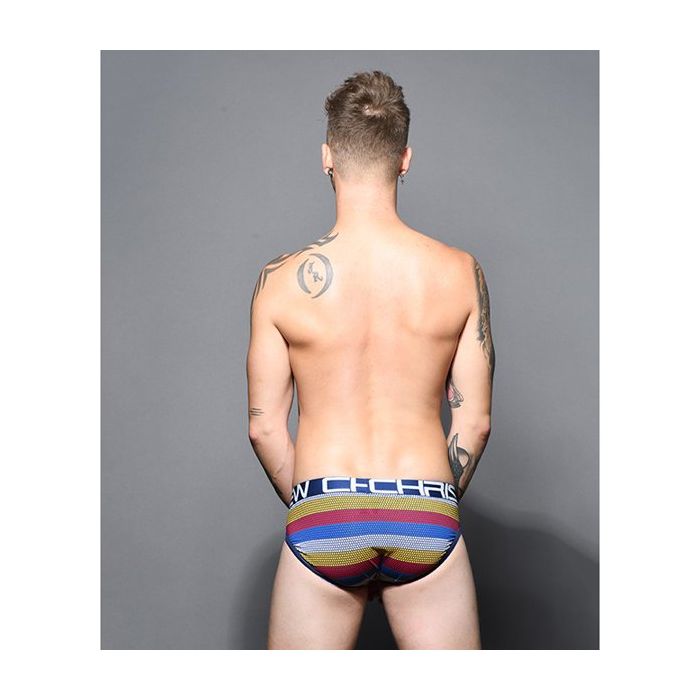 Zit jij op dezelfde frequency als jouw partner? Dan zal jouw partner blij verrast zijn met de Andrew Christian Frequency Stripe Slip. Deze limited edition design slip heeft een kleurrijke pointillisme print. De slip heeft een donkerblauwe signature slimming waistband met Andrew Christian logo. De zachte zomen zijn net als de lage tailleband donkerblauw van kleur.