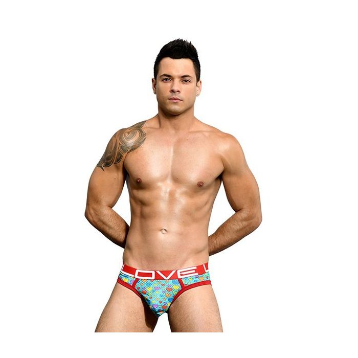 Wat een boel liefde straalt de Andrew Christian - Love Pride Heart Mesh Brief uit and we just love, love, love it! Het sportieve mesh is lekker luchtig, voelt heerlijk zacht aan en is versierd met een kleurrijke hartjes print waarmee je een lach op ieders gezicht zult toveren. De slip heeft een strakke pasvorm en een lage elastische tailleband in een contrasterend rode kleur. Op de tailleband staat in grote witte letters "Love".