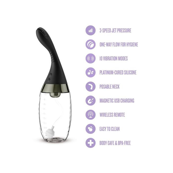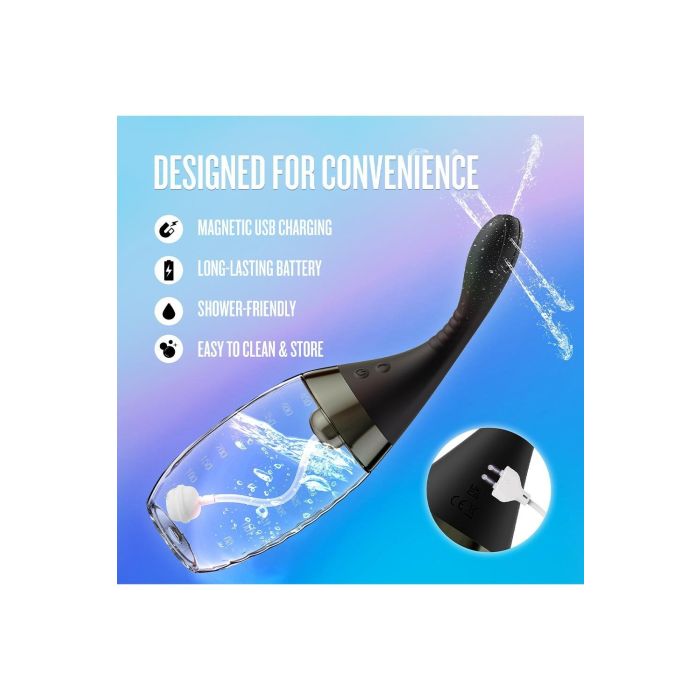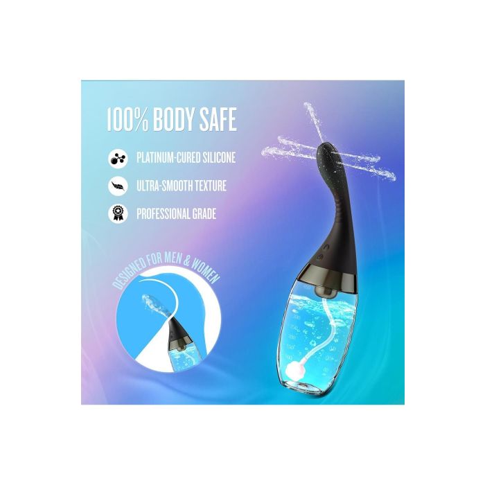 Gemaakt van lichaamsveilige, platina-uitgehard silicone met een zijdezachte afwerking, is de Aqua Jet zacht voor de huid en ontworpen voor een grondige, comfortabele reiniging. Met een IPX7 waterdichtheid, USB-oplaadbaarheid en een eenvoudig te demonteren ontwerp voor snelle reiniging en onderhoud, is deze douche perfect voor zowel beginners als ervaren gebruikers. Transformeer je reiniging van een routine naar een ritueel en voel je fris, ontspannen en klaar voor nieuwe ontdekkingen.