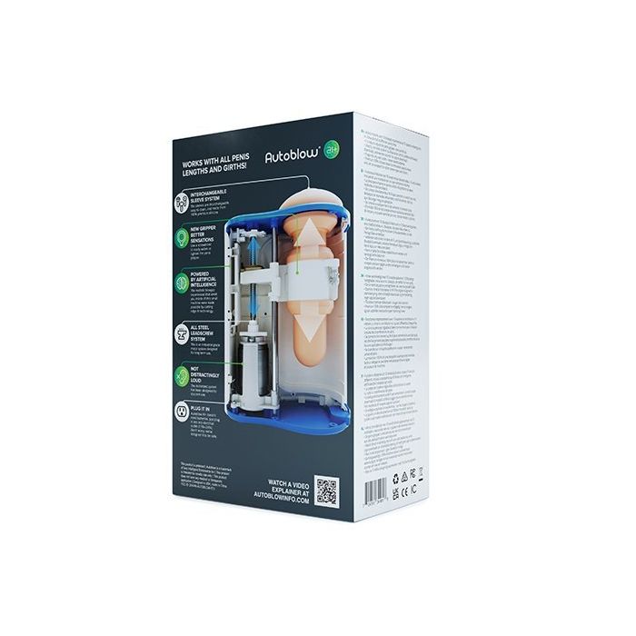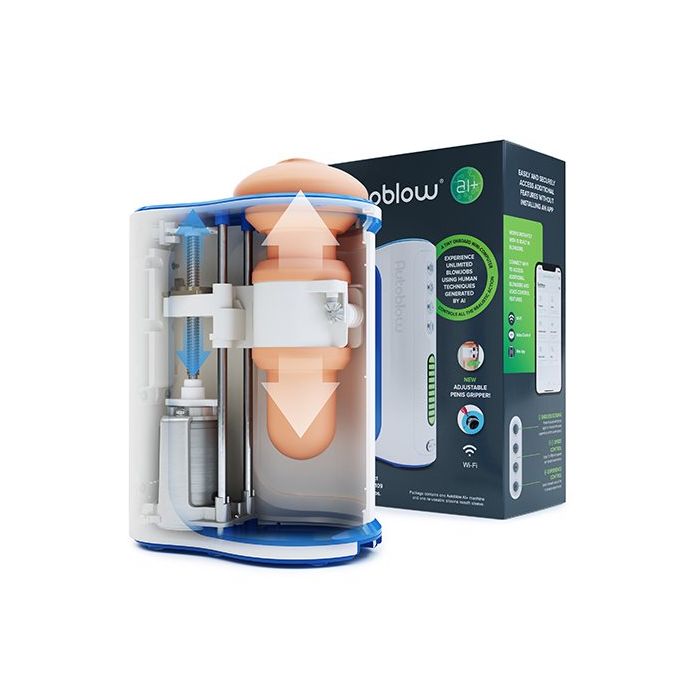 Deze Automatische Masturbator A.I.+ Machine van Autoblow is geprogrammeerd om je een pijpbeurt te geven met behulp van echte technieken. Nieuwe AI+-versie bevat onbeperkte internetmogelijkheden. Geen gedoe met batterijen, Autoblow AI+ heeft geen batterijen nodig. Sluit hem gewoon aan op een stopcontact (110v-240v). De automatische masturbator maakt verbinding met internet en maakt downloadbare pijpbeurten, spraakopdrachten, afstandsbediening en meer mogelijk. Hou jij van lekker strak? Autoblow AI+ beschikt over een gemakkelijk aanpasbare penisgrijper die zich aanpast aan het gewenste strakheidsniveau. De sleeve is verwisselbaar, gemaakt van super realistisch siliconen en gemakkelijk schoon te maken. Autoblow AI+ gebruikt een opnieuw ontworpen motor die 50% stiller is dan de Autoblow 2 maar 3 keer krachtiger is!
