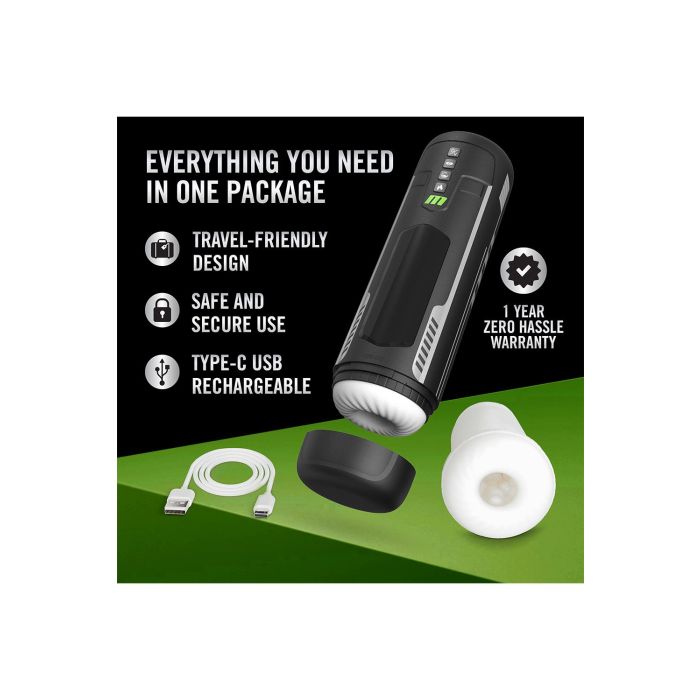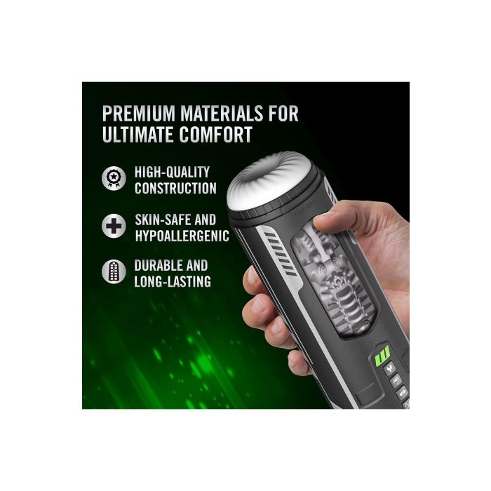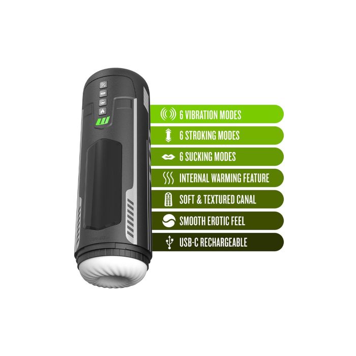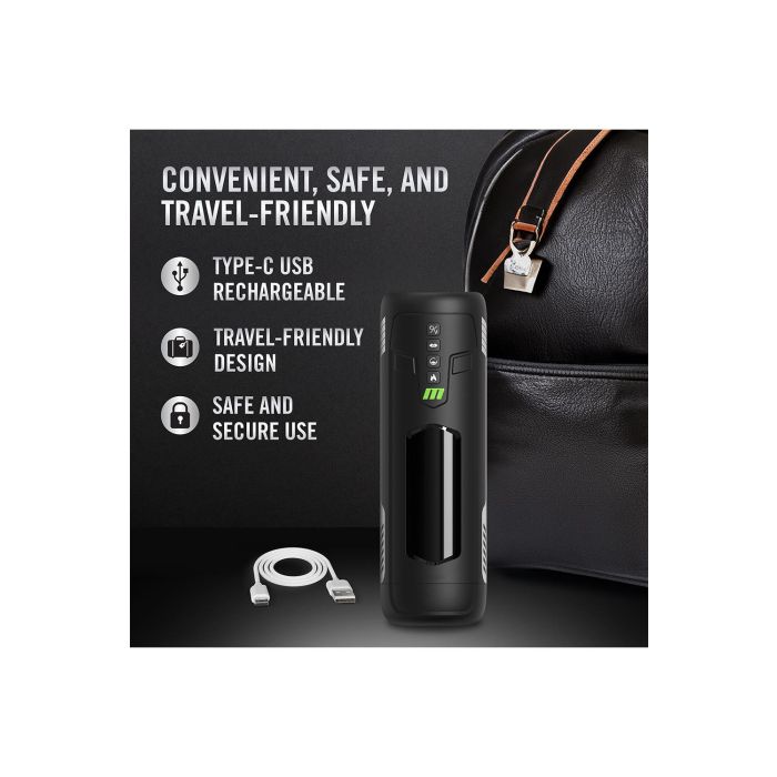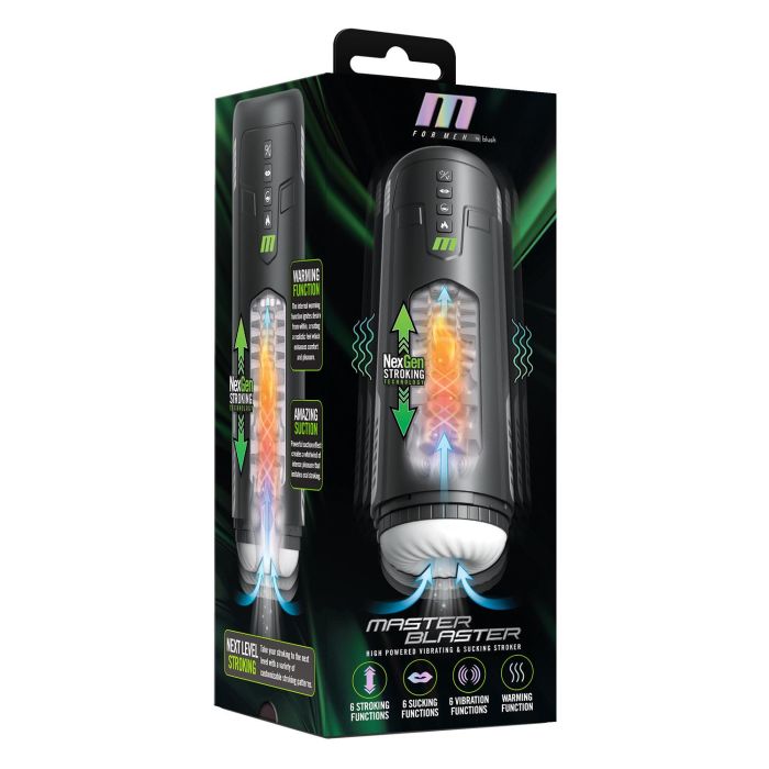 De M For Men Master Blaster is de ultieme automatische masturbator die een ongeëvenaarde ervaring biedt voor de moderne man. Dit futuristische apparaat is ontworpen met een discreet en duurzaam uiterlijk, compleet met een beschermende hoes die zorgt voor een optimale hygiëne en onderhoudsgemak. Met vier innovatieve functies biedt de Master Blaster een volledig aanpasbare stroefervaring die perfect aansluit bij al jouw wensen. De krachtige motor beschikt over zes dynamische standen voor vibratie, stoten en zuigen, die jouw lid omhullen met golven van adembenemende sensaties. De geavanceerde zuigtechnologie simuleert een realistische orale ervaring, waardoor je elke centimeter van de zachte en textuurrijke binnenkamer kunt voelen. Bovendien zorgt de luxe verwarmingsfunctie voor extra stimulatie, waardoor jouw verlangens op een unieke manier worden aangewakkerd. Met de meegeleverde USB-C oplader kun je tot wel 60 minuten genieten van een volle lading, waardoor de Master Blaster de perfecte metgezel is voor een nieuwe dimensie van genot. Verheug u op een ongeëvenaarde reis naar genot met de Master Blaster, de koning onder de masturbators.