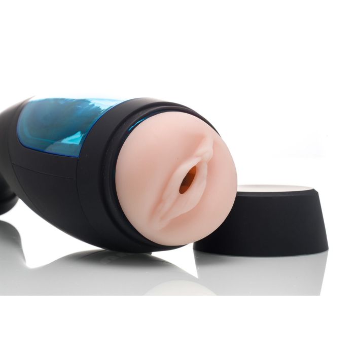 De Powermate 1 ligt goed in de hand waardoor je een fijne grip hebt en het makkelijk maakt om de controle te behouden. Aan de onderkant van de masturbator is een realistische huidskleur vagina nagebootst. Deze is gemaakt van zacht siliconen materiaal dat goed te combineren is met glijmiddel op waterbasis. Gebruik voldoende glijmiddel voor een soepel verloop en levensecht gevoel. Wanneer je je penis hebt ingebracht kun je kiezen uit maar liefst 4 verschillende snelheden. Wissel ze alle 4 met elkaar af of kies jouw favoriet. Om de opwinding nog meer te intensiveren, heeft de Powermate 1 ook nog een sexy vrouwenstem die kreungeluiden maakt. Dankzij de Headphone Jack hoef je je geen zorgen te maken om je omgeving, maar kun je lekker discreet genieten. De verschillende functies zijn eenvoudig in te stellen met de verschillende drukknoppen aan de bovenkant van de masturbator.