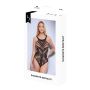 De Baci Diamonte Bodysuit is een verleidelijke toevoeging aan elke lingeriecollectie, ontworpen om de vrouwelijke vormen op een elegante manier te accentueren. Het uurglasvormige decolleté biedt een flatterende uitstraling die de aandacht vestigt op de schouders en de halslijn. De bodysuit is vervaardigd uit een doorschijnende, glanzende stof in een diep zwart, wat zorgt voor een luxe uitstraling. De geometrische en patroonachtige uitsparingen, samen met het netweefsel, creëren een speelse maar verfijnde look, waardoor de huid subtiel zichtbaar wordt en de drager een gevoel van zelfvertrouwen en allure krijgt.