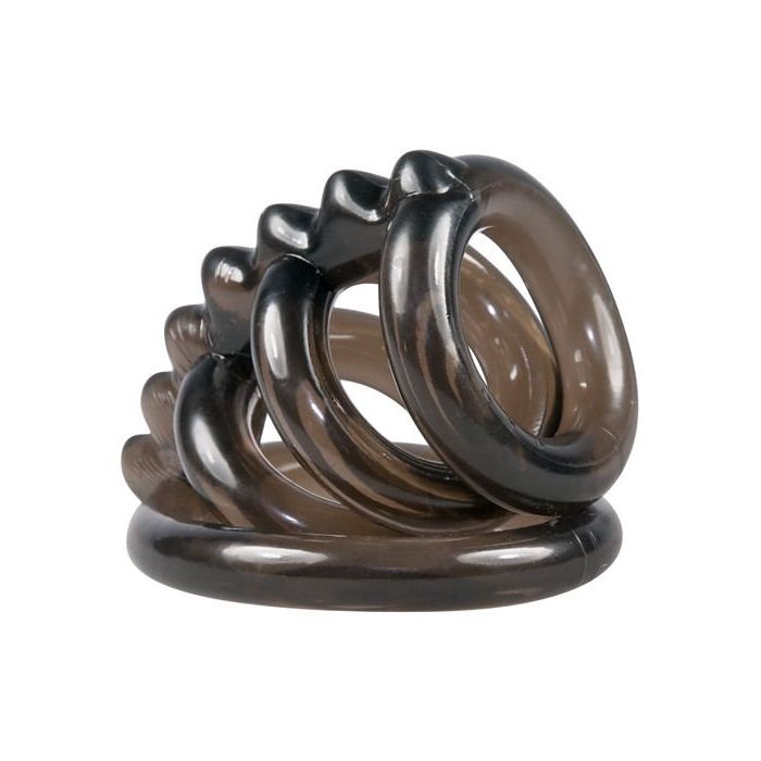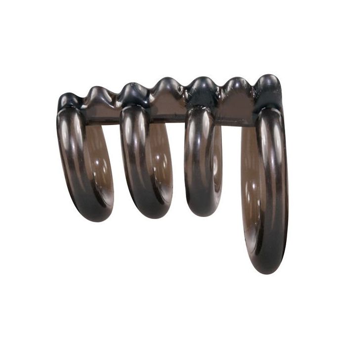 Vier comfortabele rekbare penisringen die met elkaar verbonden zijn en die de balzak en penis afknellen. Deze beste penisring verzekerd je van een harde penis. De knobbeltjes aan beide kanten zorgen voor extra stimulatie bij je partner tijdens de penetratie.