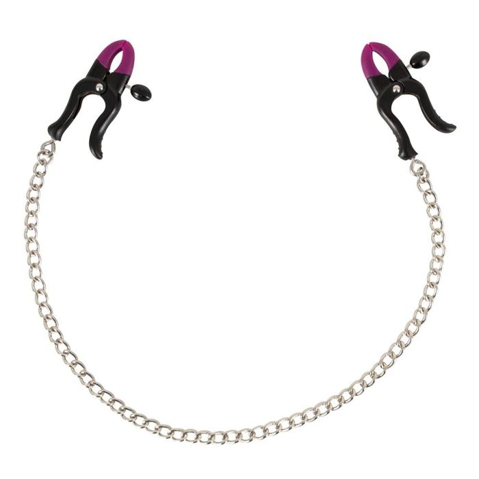 Houden jullie wel een beetje kinky seks avonturen? Dan mogen deze bad kitty siliconen tepelklemmen met ketting ontbreken in jullie slaapkamer. Bad Kitty weet precies wat lekker is tijdens ondeugende avontuurtjes. De siliconen klem je op je tepels en worden door middel van een ketting aan elkaar verbonden. De klemmen zorgen voor extra spanning door middel van het draaiknopje kun je de spanning verhogen. De lengte van de ketting is 37 cm. Het is niet alleen spannend om te plaatsen, het is ook heel opwindend om naar te kijken. Voor de vrouw zelf geeft het een heerlijk gevoel en verhoogd het de zin in seks. Alleen deze tepelklemmen zijn natuurlijk niet genoeg, kijk ook eens naar een zweepje, een blinddoek of een paar opwindende handboeien.