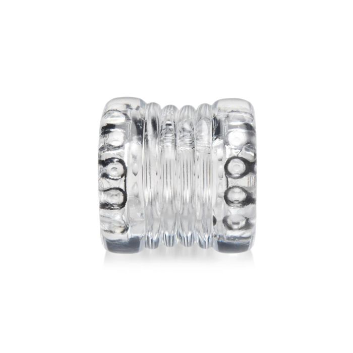 De Ballstretcher XR Brands Ball Stack is vervaardigd uit rekbaar, lichaamsveilig TPE, waardoor hij perfect om je ballen past en ze stevig van je schacht weg houdt. Dankzij de ideale stretch kun je je ballen comfortabel naar beneden trekken zonder pijn of ongemak te ervaren. De flexibiliteit van de stretcher zorgt ervoor dat hij zelfs bij langdurig gebruik of bij het veranderen van positie prettig blijft aanvoelen. Wat deze ball stretcher echt bijzonder maakt, zijn de rijen met textuurknobbels aan beide uiteinden van de tunnel. Deze zorgen voor extra stimulatie en grip, waardoor je ervaring nog intenser wordt. Vergeet niet om een op waterbasis gebaseerde glijmiddel te gebruiken voor het beste resultaat en vermijd petroleumproducten. Het schoonmaken is eenvoudig: gebruik warm water en een toy cleaner, en je bent klaar voor je volgende speelsessie. Breng wat glijmiddel aan op je schacht en ballen, en coat ook de binnenkant van de stretcher. Trek voorzichtig je ballen naar beneden en ontspan zoveel mogelijk. Plaats één bal tegelijk in de stretcher en controleer of er voldoende glijmiddel is aangebracht om de huid soepel te houden. Deze stretcher helpt je orgasme uit te stellen terwijl het de sensatie versterkt. Laat je partner meegenieten en beleef samen het moment totdat je eindelijk de climax bereikt.