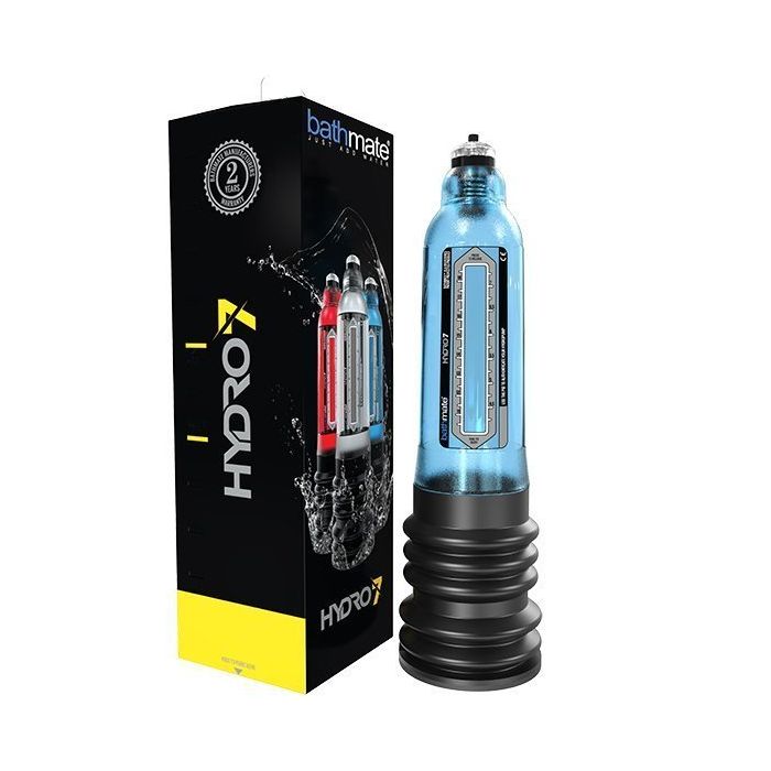 De Bathmate Hydro & Penispomp blauw is een hydrotherapie pomp die helpt om het maximale uit je erectie te halen. De pomp zorgt voor een vacuüm effect door middel van water. Het gebruik van de Bathmate Hydro 7 penispomp is heel eenvoudig en natuurlijk: vul de pomp met lauwwarm water en stop je penis erin. Door de pomp vervolgens tegen je lichaam aan te drukken, loopt een deel van het water eruit en wordt de pomp vacuüm gezogen. Dit verhoogt de bloedcirculatie in je penis waardoor hij snel groot en hard zal worden. De Bathmate Hydro 7 is geschikt voor een erectie van maximaal 21 cm en heeft een handig meetlint op de cilinder waarmee je je voorgang nauwkeurig in de gaten kunt houden.