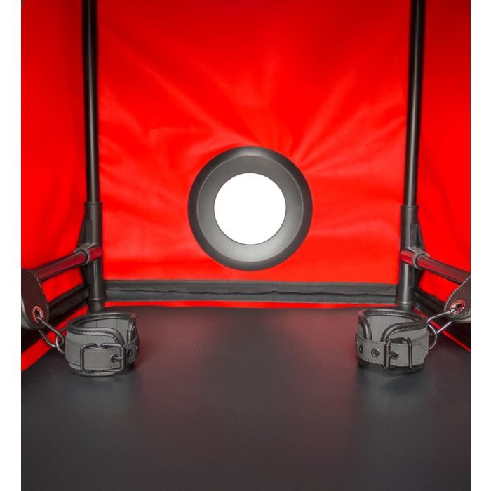 Deze BDSM cabine Bukkake van Secret Dome is perfect voor fantasierijke spelletjes en biedt een ontsnapping aan de dagelijkse sleur. Met een innovatief buisvormig insteeksysteem en een robuust dekzeil is de cabine snel en eenvoudig op te zetten, zodat je binnen enkele minuten kunt beginnen met spelen. De twee grote openingen aan de zijkanten zorgen voor een gemakkelijke toegang, terwijl de opening voor het hoofd is uitgerust met een rits en een brede, verstelbare nekkraag voor extra comfort. De handige ritsdeur maakt het in- en uitstappen een fluitje van een cent. Geniet van de sfeervolle LED-verlichting en de zachte vloermat die voor een comfortabele ervaring zorgen. Bovendien kun je de bijgeleverde handboeien naar wens binnenin plaatsen, en de zacht gevoerde manchetten zijn snel om te doen en eenvoudig te verstellen met gespen. Alles wordt geleverd in een praktische opbergtas, inclusief de gedemonteerde cabine, vloermat, een paar handboeien en een LED-lamp. Maak je klaar voor een avontuur dat je zintuigen prikkelt en je fantasieën tot leven brengt!