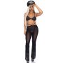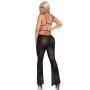 De tweedelige Bikini Top & Flared Pants - Zwart set is een opvallende creatie. Deze set bevat een top met bikini model en een broek met hoge taille en uitlopende pijpen. De top en de broek zijn beide gemaakt van fijn, doorzichtig tule. De top en de broek zijn versierd met strass steentjes voor een betoverend mooi effect!