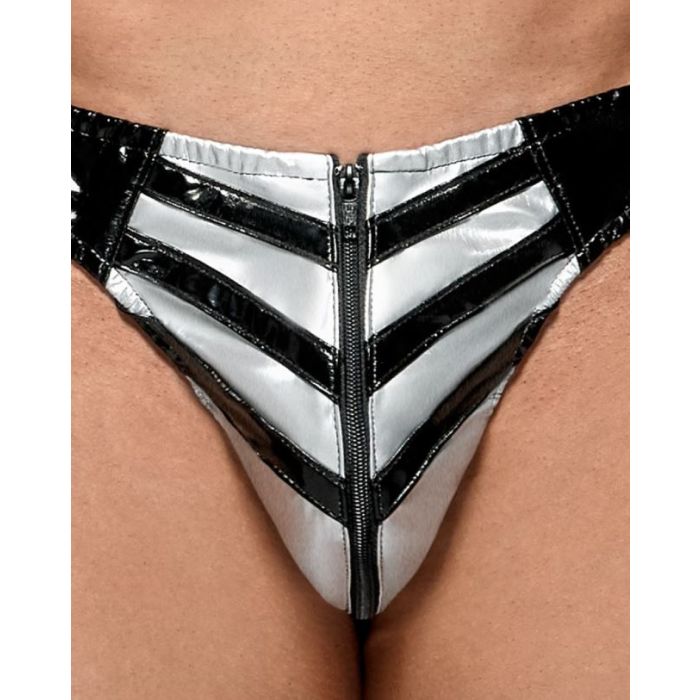 De lakslip is verkrijgbaar in verschillende maten, van S tot 2XL, waardoor er voor iedereen een passende maat beschikbaar is. Of je nu op zoek bent naar een sexy lingerie item voor een speciale gelegenheid of gewoon wilt pronken met je stoere stijl, deze slip is een must-have in je kledingkast. De combinatie van de zwarte glans en de zilverkleurige accenten zorgen ervoor dat deze slip een echte eyecatcher is.