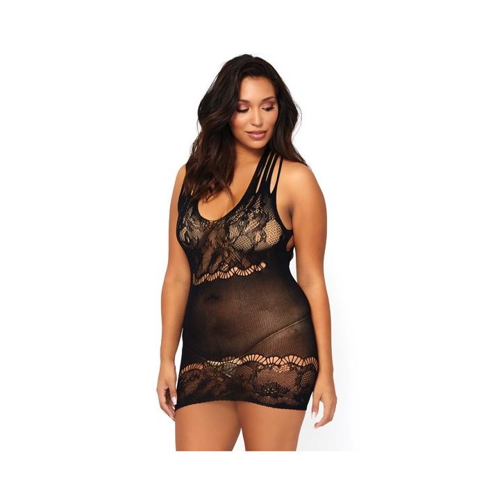 In het Bloemen Kant Mini Jurkje QS van LegAvenue zul jij je op en top vrouw voelen en maak je met gemak je partner gek van verlangen. Het jurkje is gemaakt van doorschijnend materiaal dat nauwsluitend rond je lichaam zit en heerlijk zacht aanvoelt. Aan de voorzijde heeft het jurkje een laag uitgesneden hals en kanten cups. Vanaf de borsten lopen meerdere smalle bandjes over de schouders naar de rug waar ze op sierlijke wijze opsplitsen voor een stijlvol design. Langs de rand is het jurkje afgewerkt met sierlijk bloemen kant.