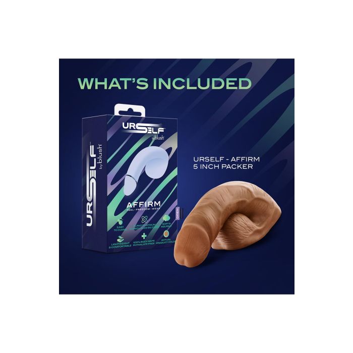 De Blush Affirm Dildo in een prachtige bruine tint is ontworpen door URSELF™ met zorg en aandacht voor jouw behoeften. Deze dildo is vervaardigd uit Purio®, een 100% lichaamsveilige, platina-uitgeharde vloeibare siliconen die een ongelooflijk zacht en realistisch gevoel biedt. De levensechte vorm en flexibele structuur passen zich moeiteloos aan jouw lichaam aan, waardoor je een authentieke en bevestigende ervaring krijgt. Lichtgewicht en duurzaam, de Affirm Dildo is perfect voor dagelijks gebruik en kan discreet onder kleding of met speciaal ondergoed worden gedragen. Het gladde, niet-poreuze oppervlak maakt het onderhoud eenvoudig en hygiënisch, zodat je je kunt concentreren op wat echt belangrijk is: jouw comfort en zelfvertrouwen. Laat de Affirm Dildo je herinneren dat wat goed voelt voor jou altijd genoeg is!