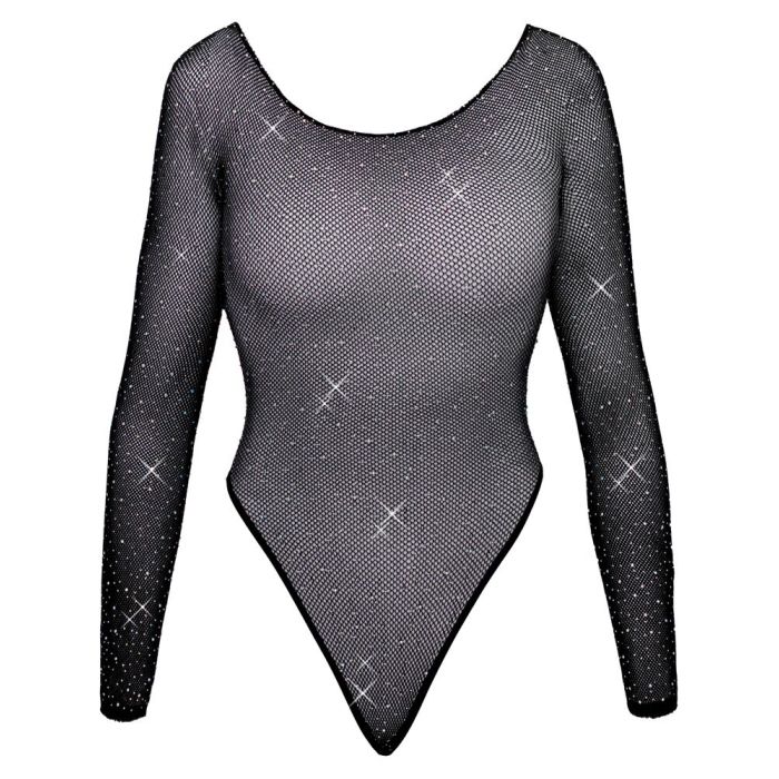 De Body met Lange Mouwen Fantasy van Cottelli is een must-have voor elke fashionista die haar sensuele kant wil benadrukken. Deze zwarte body is vervaardigd uit een spannende mesh die niet alleen een prachtig netwerktransparant effect biedt, maar ook bedekt is met fonkelende strassteentjes in verschillende groottes, waardoor je altijd in het middelpunt van de belangstelling staat. Het super stretchy en zachte materiaal zorgt voor een comfortabele pasvorm die je de hele avond door kunt dragen. Met een royaal uitgesneden ontwerp en een riostring stijl accentueert deze body je rondingen op een onweerstaanbare manier, terwijl de hoge beenuitsnijdingen je benen en billen prachtig laten uitkomen. Perfect voor een speciale gelegenheid of een intieme avond, deze body is de ultieme combinatie van stijl en comfort!